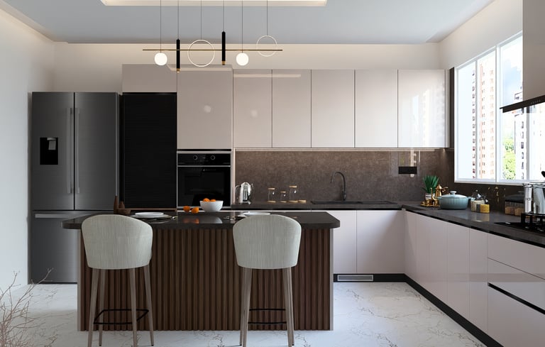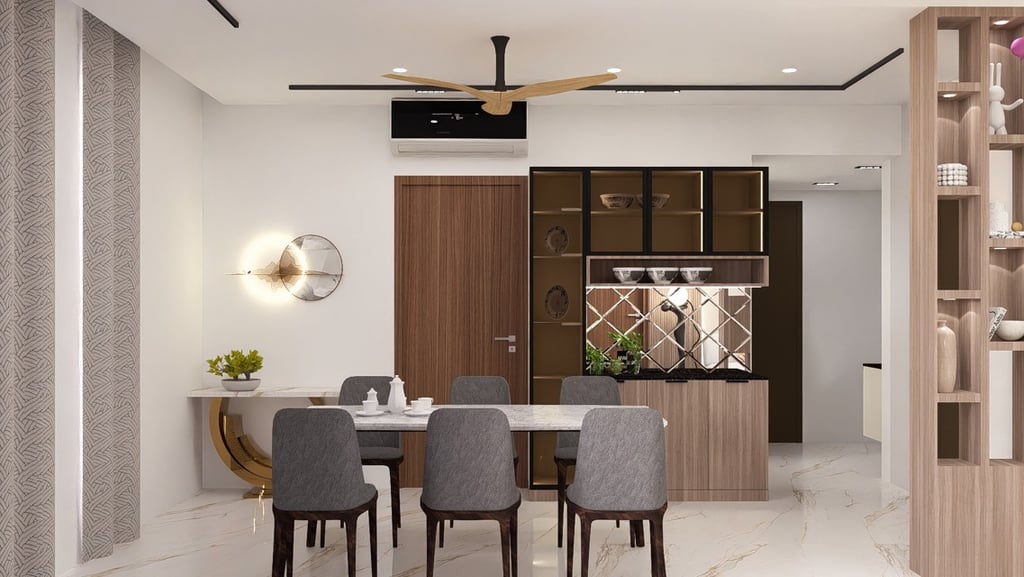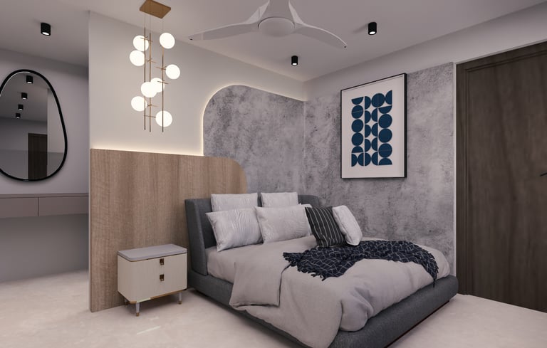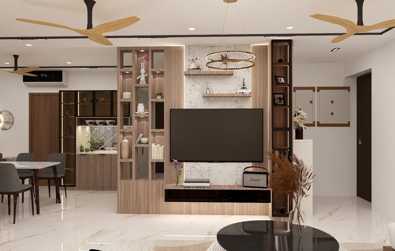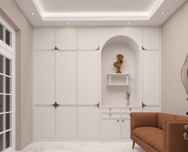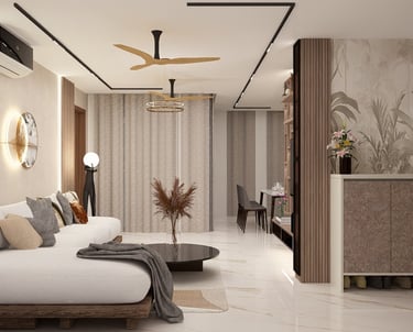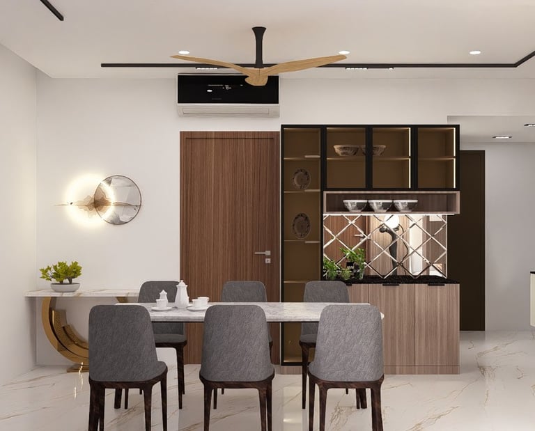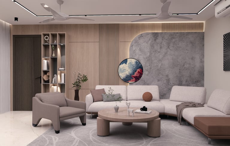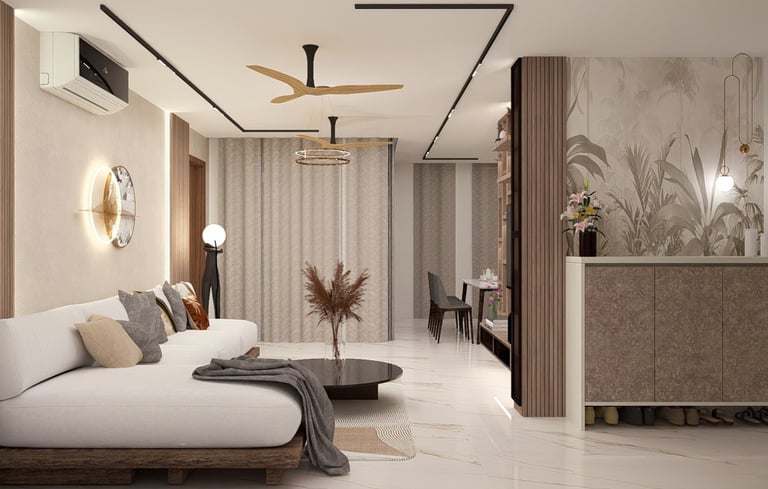This residence was designed to reflect the warmth and preferences of a modern Indian family. The interiors feature rich wooden textures and brown-toned laminate finishes that create a cozy and welcoming atmosphere throughout the space. Carefully integrated lighting and thoughtfully designed false ceiling elements enhance the overall ambience while adding depth and elegance to the interiors. The design focuses on balancing comfort, functionality, and timeless aesthetics to create a home that feels both practical and visually appealing.