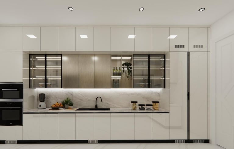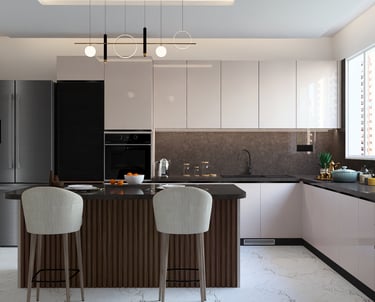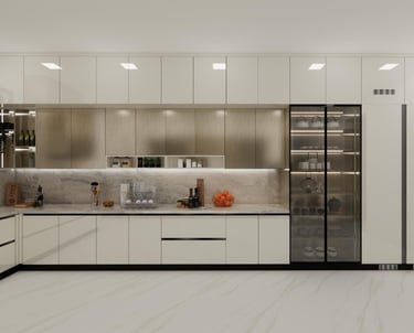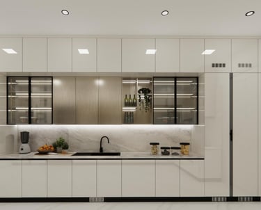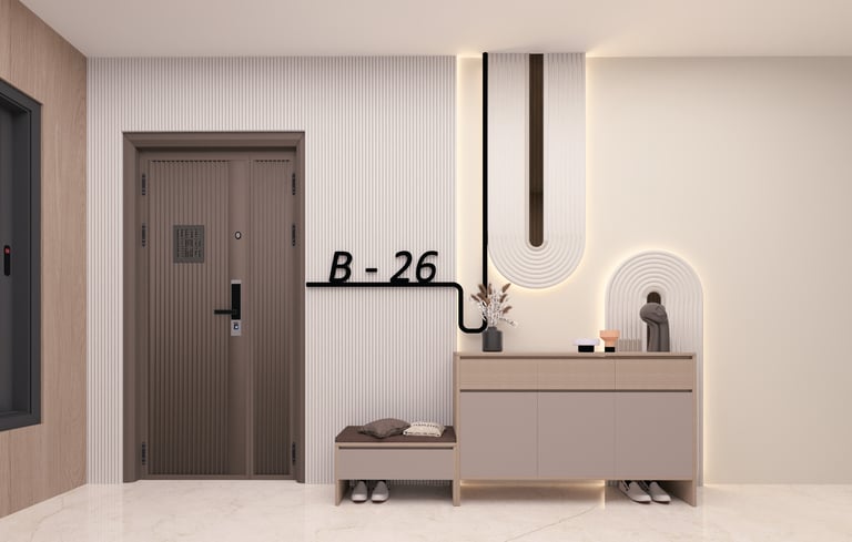 This residence located on the 26th floor was designed with a modern and minimalistic approach, focusing on clean lines and a refined aesthetic. The interiors highlight carefully planned lighting and elegant wall panels that add depth and character to the space. The design emphasizes simplicity, functionality, and a calm visual balance, creating a contemporary living environment while taking advantage of the elevated setting and views from the 26th floor.